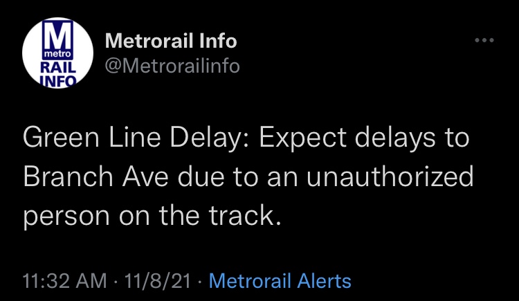 11:52A MTPD on site requesting third rail power be de-energized at Naylor Rd.
